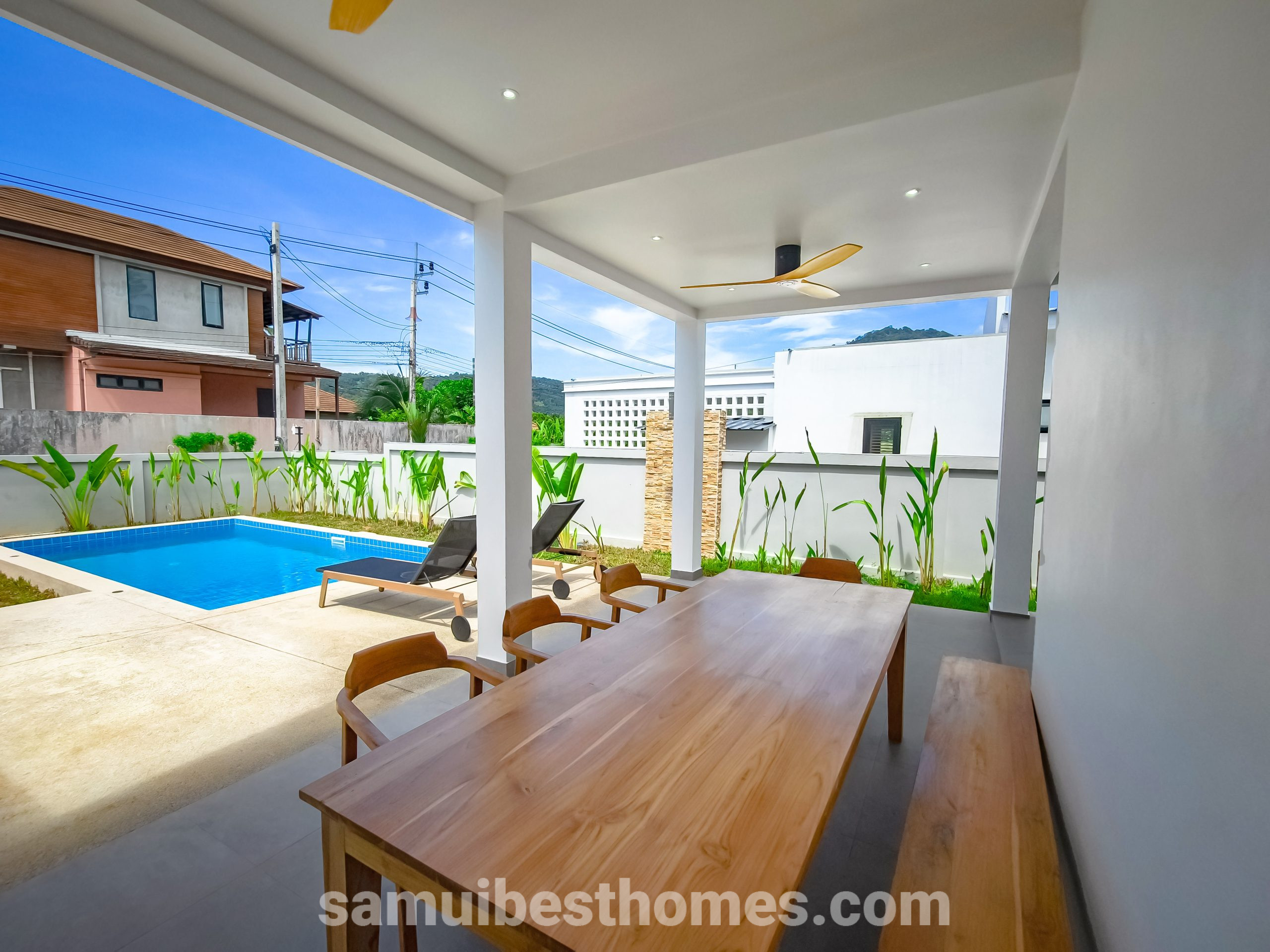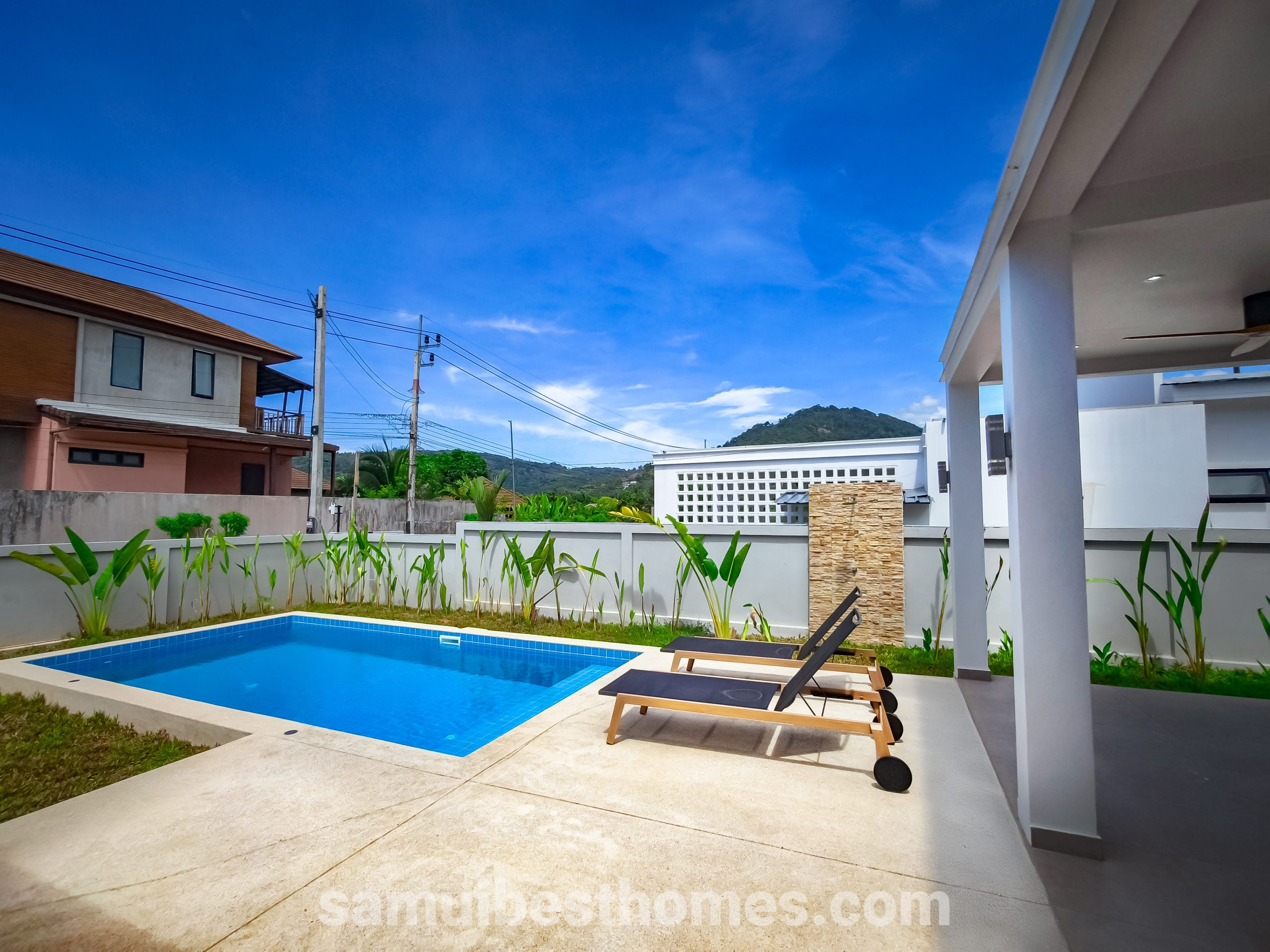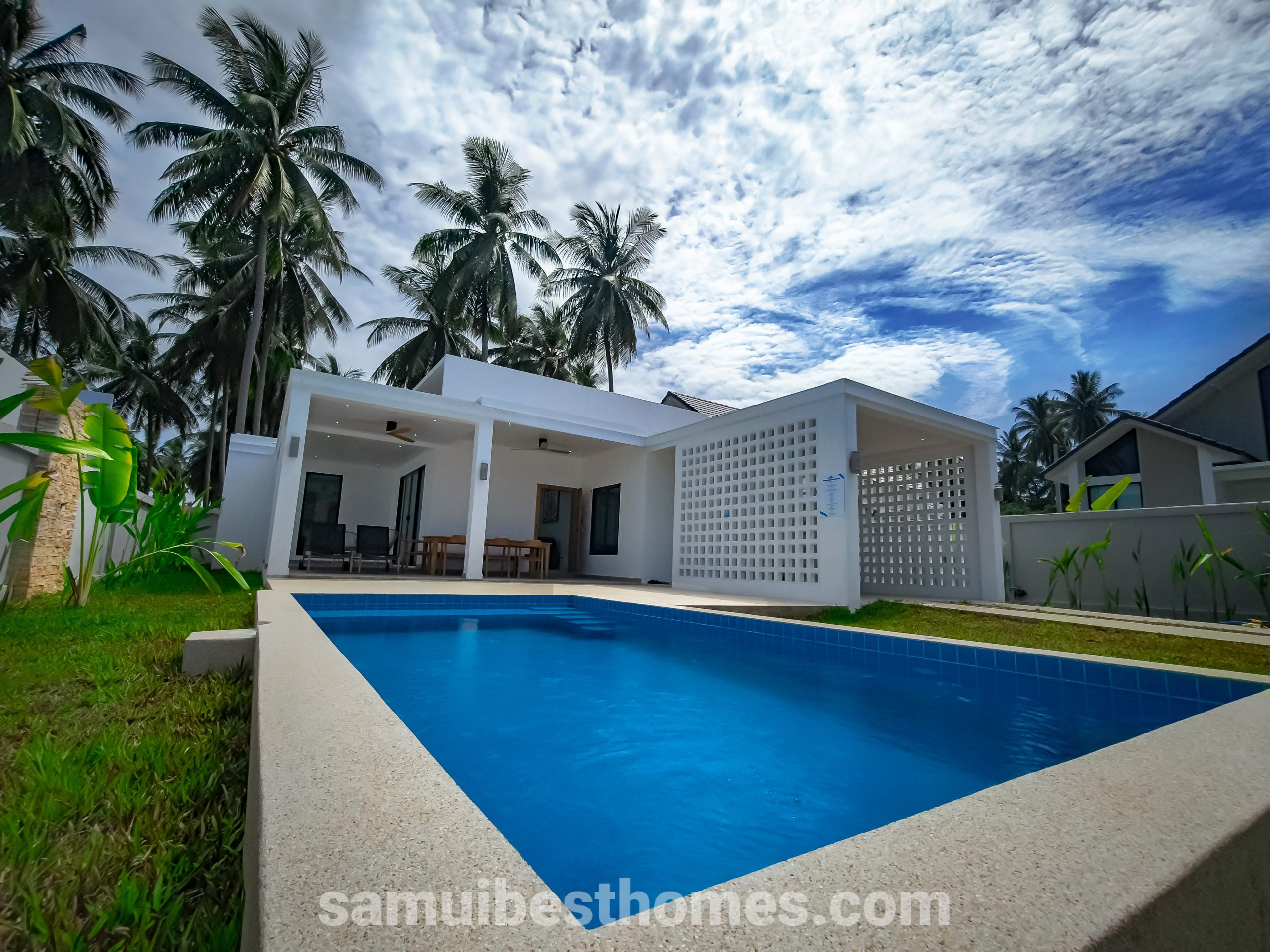 This modern villa in South Lamai combines the allure of tropical living with the comfort and luxury of contemporary design. Offering 3 bedrooms and 3 bathrooms, it spans a spacious 145 square meters within a 486-square-meter plot, making it ideal for both private relaxation and vibrant gatherings. With proximity to both the beach and essential amenities, the villa provides an effortless blend of serenity and convenience.