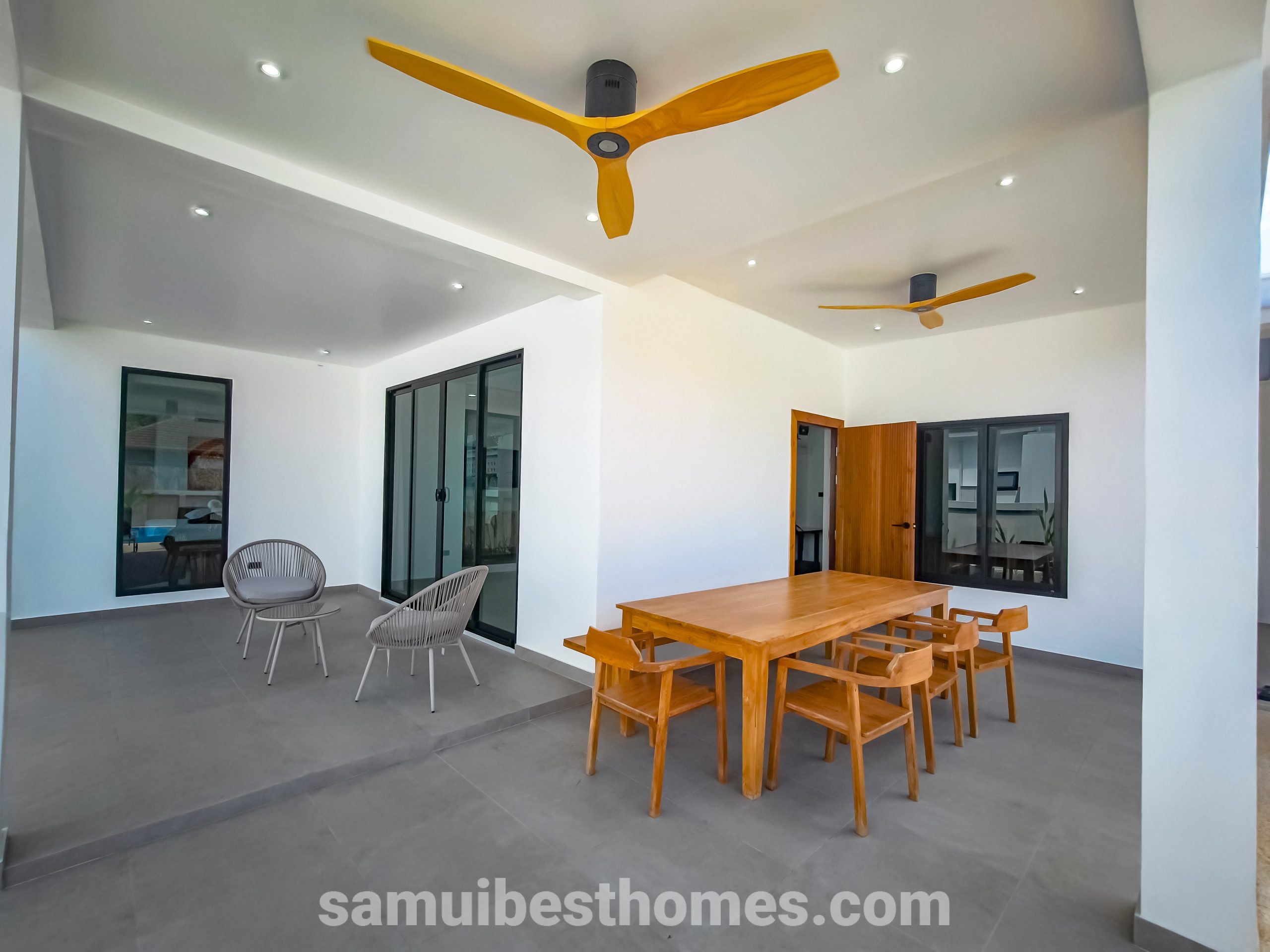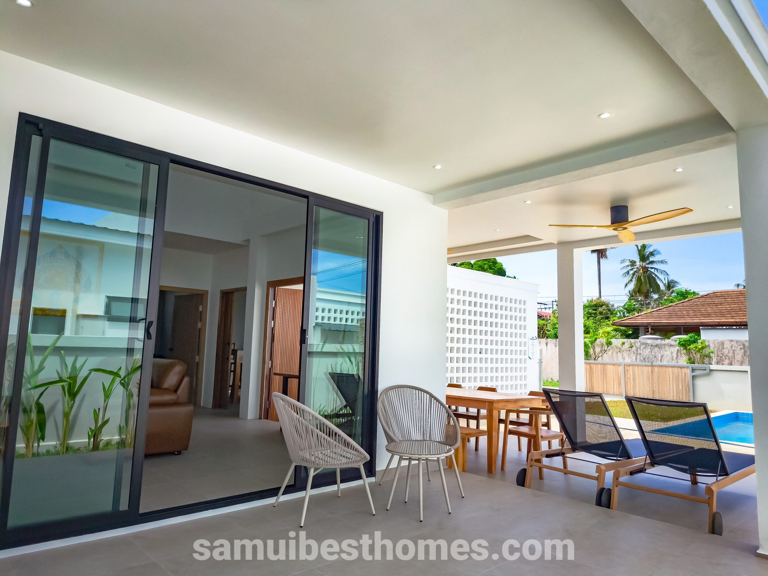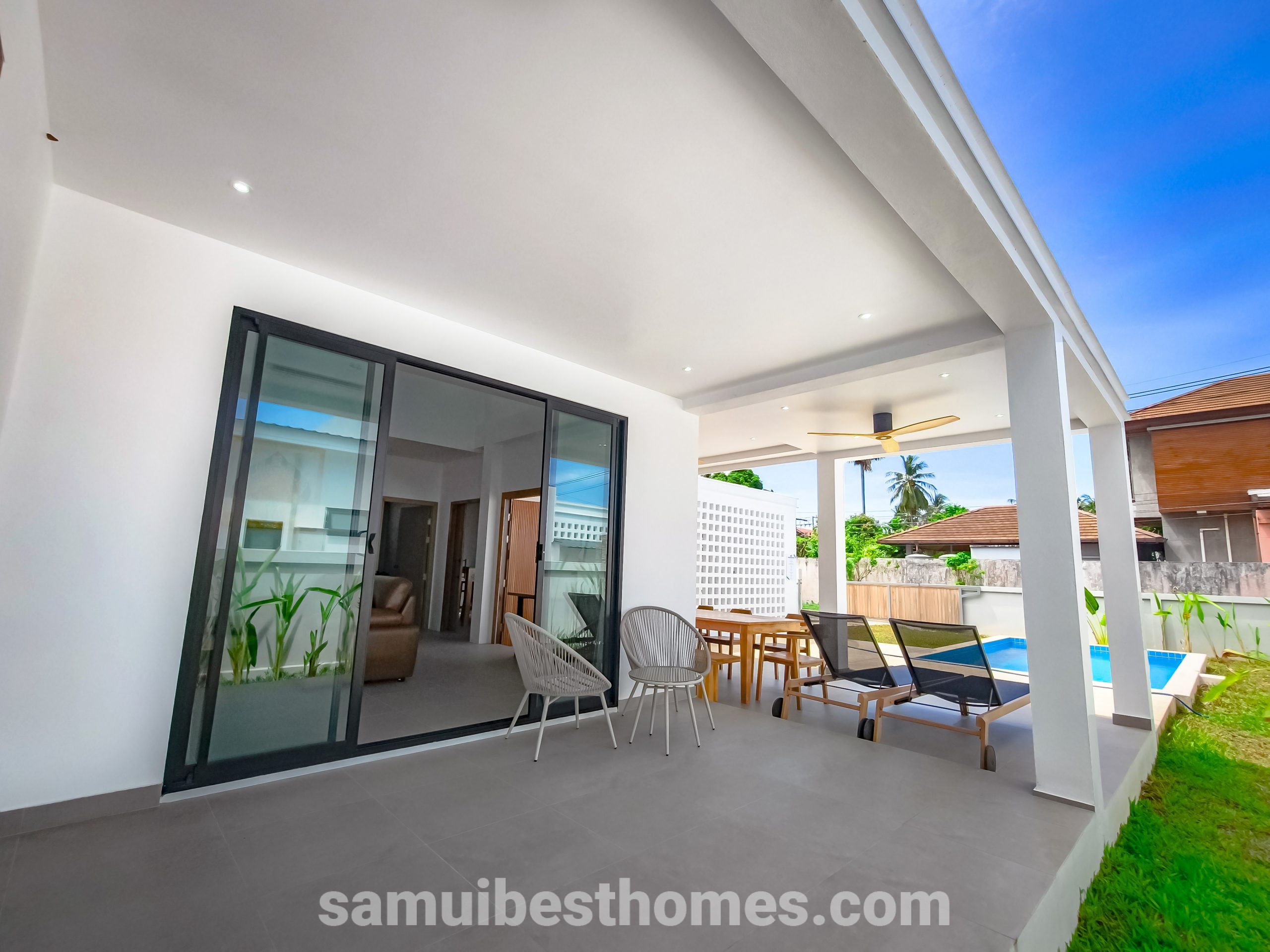 This modern villa in South Lamai combines the allure of tropical living with the comfort and luxury of contemporary design. Offering 3 bedrooms and 3 bathrooms, it spans a spacious 145 square meters within a 486-square-meter plot, making it ideal for both private relaxation and vibrant gatherings. With proximity to both the beach and essential amenities, the villa provides an effortless blend of serenity and convenience.