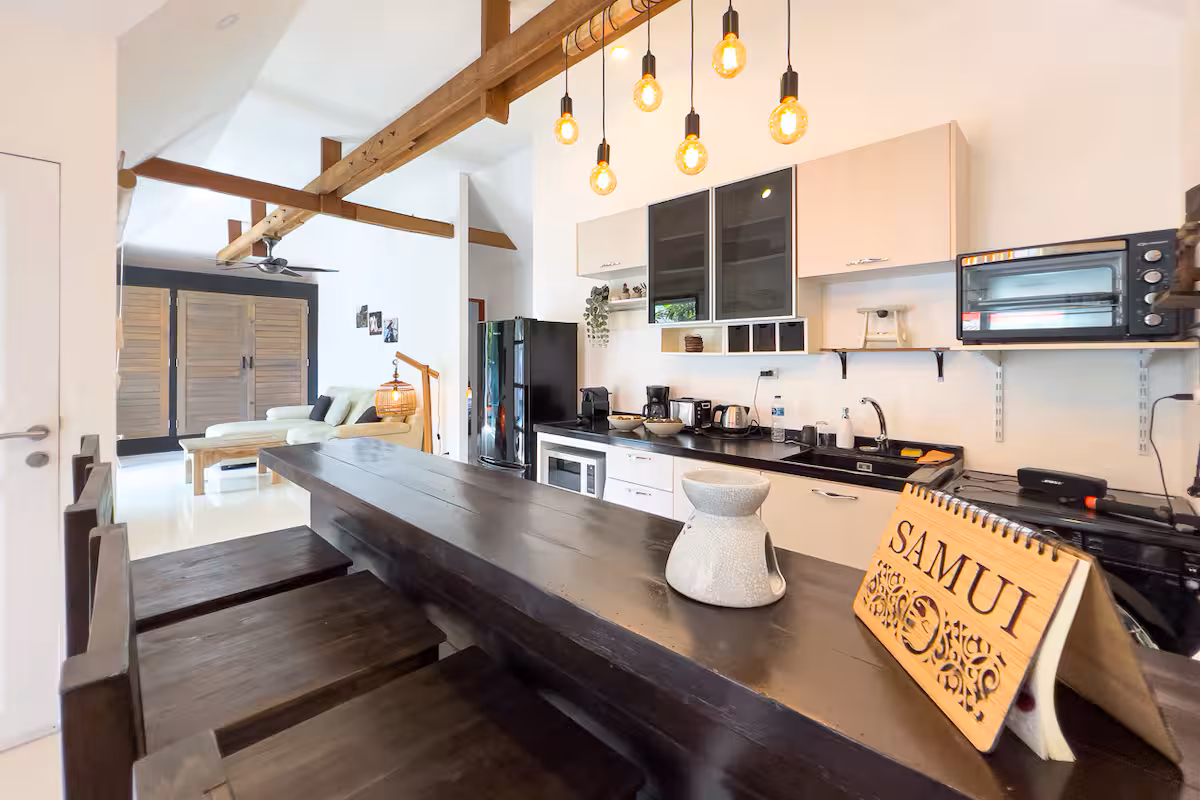 With 2 spacious bedrooms, 2 bathrooms, and a private swimming pool, it is easy to relax and unwind in this contemporary living space. Asian decor, clean lines and plush furniture only increase guests’ comfort and overall mood when deciding to spend your days and nights here. Just a few minutes walk to Bangrak Beach, your holiday will surely be full of fun in the sun, high-quality experiences, and ultimate lounging amongst the most beautiful oceans and beaches in the world.