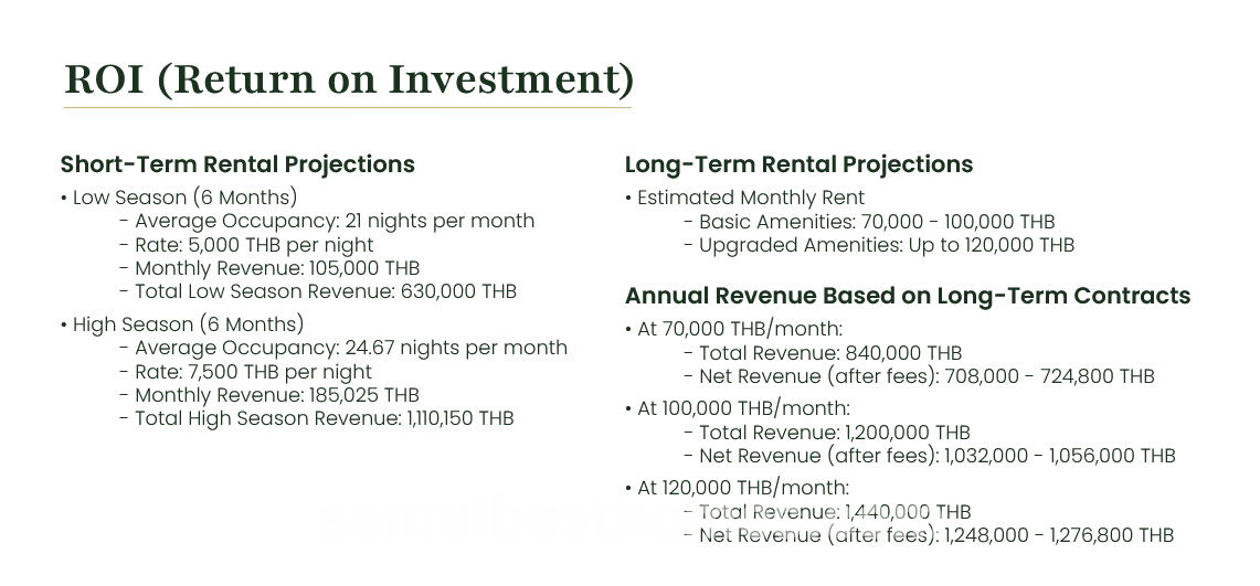 Lease fees are set at 5,000 THB per month with a 2% annual increase. Alternatively, the full lease amount
