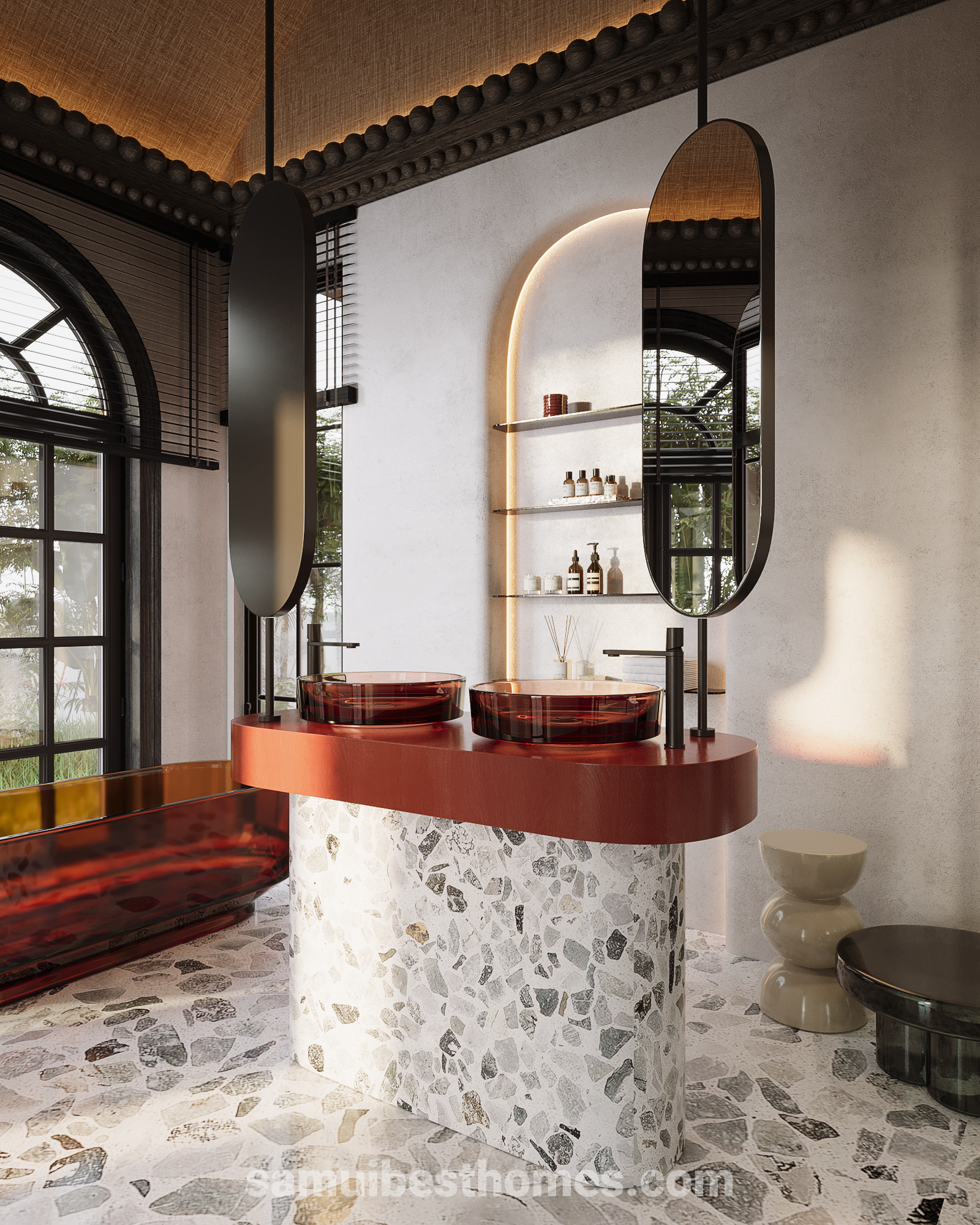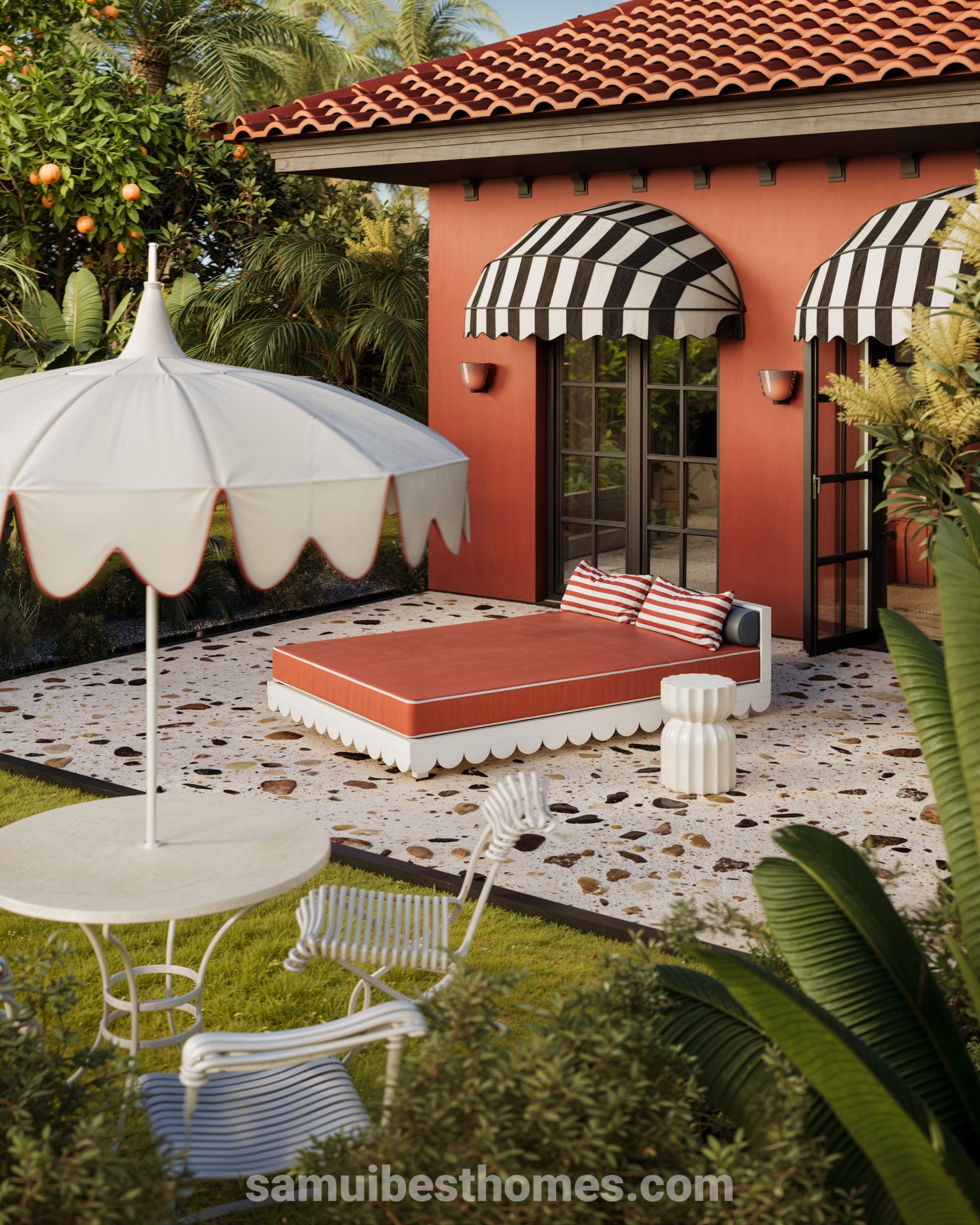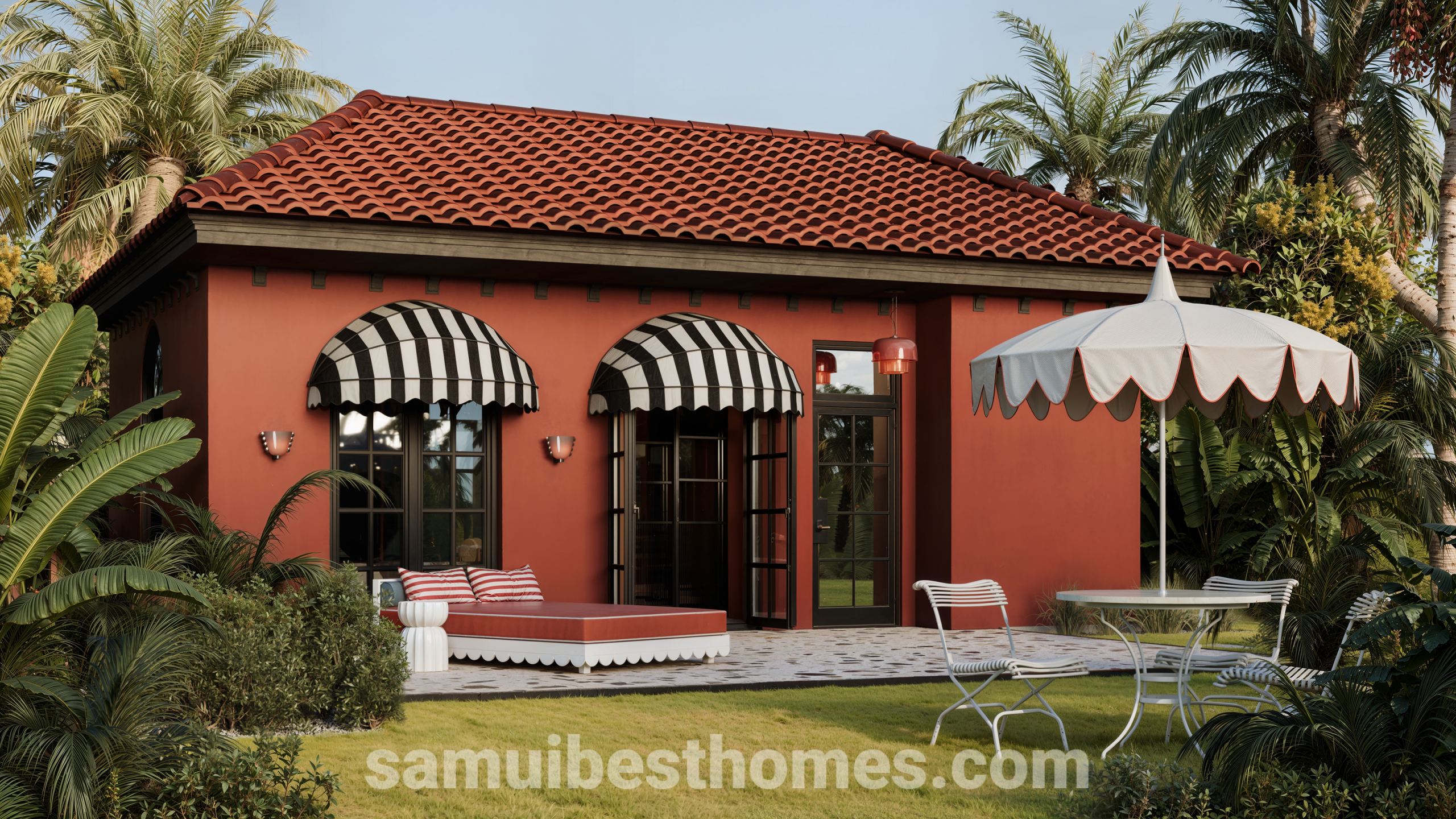 Architecturally, the project blends Mediterranean charm and tropical minimalism with terracotta-red exteriors, black-and-white awnings, native garden landscapes, vaulted ceilings, handcrafted furniture, terrazzo floors, and a designer color palette. Conveniently located between Chaweng and Lamai, it is just 200 meters from the sea, offering a quiet yet central setting in a high-demand area. Designed for rental appeal with strong branding, the villas offer an estimated net ROI of 13–15% annually, a projected payback period of 6.5–7 years, and around 4% capital appreciation per year. Flexible payment plans are available, with discounts for full prepayment or multiple units, and ownership is via a 30-year leasehold with annual lease and utility fees, starting with a reservation and down payment followed by installment-based construction payments.