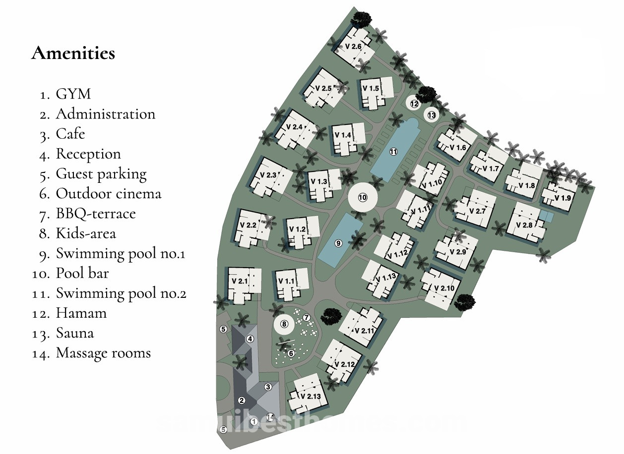 A Mediterranean-inspired villa resort in Koh Samui that offers independent villa fully furnished villas designed for both lifestyle and investment. The resort provides luxury amenities such as two large swimming pools (for relaxation and family fun), a gym, pool bar, kids-zone, SPA with hammam and sauna, café with coworking spaces, BBQ terrace, reception with guest parking, and an outdoor cinema. Residents enjoy exclusive benefits including VIP key access, priority booking, curated discounts across top restaurants and beach clubs, and entry to a private beach club.