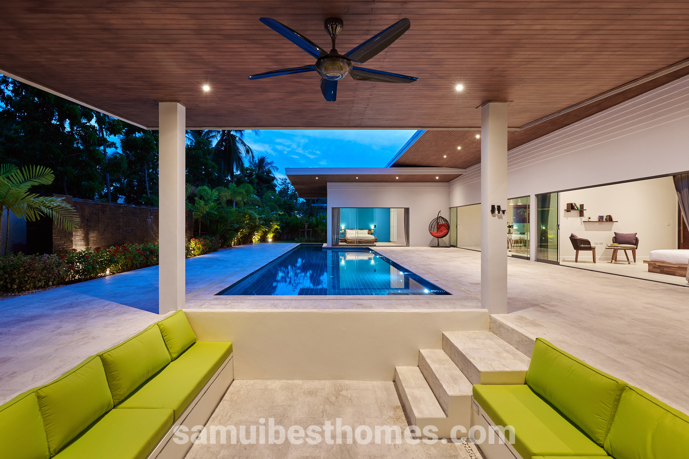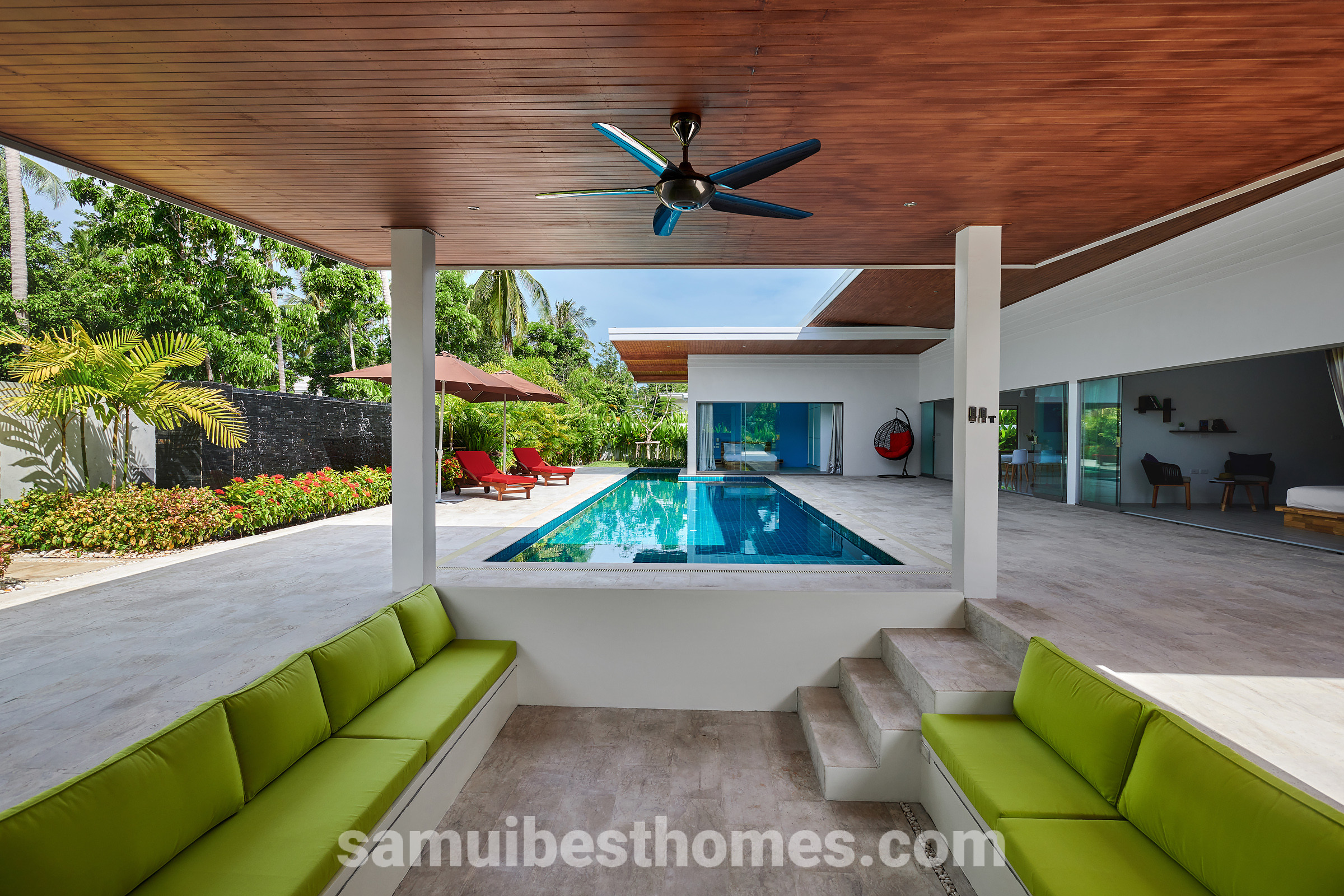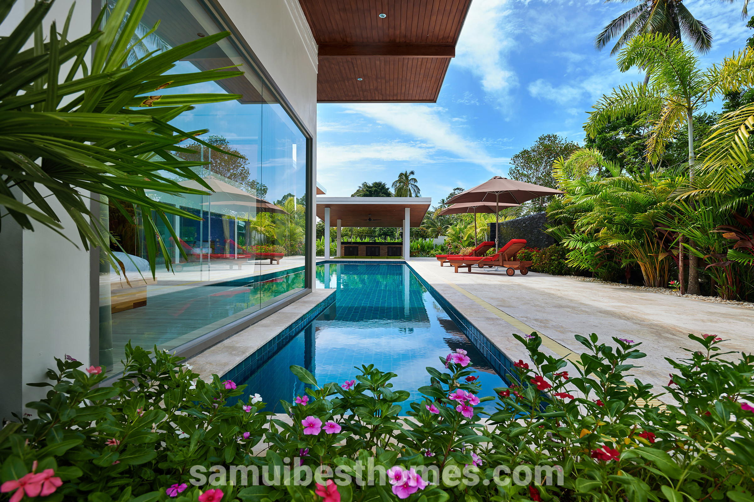 A stunning villa that combines tropical serenity with modern comfort. Nestled in the peaceful area of Namuang, this spacious villa offers four beautifully designed bedrooms, each with its own bathroom, making it ideal for families, couples, or groups. The property sits on 1,100 square metres of land and features over 400 square metres of indoor and outdoor living space.